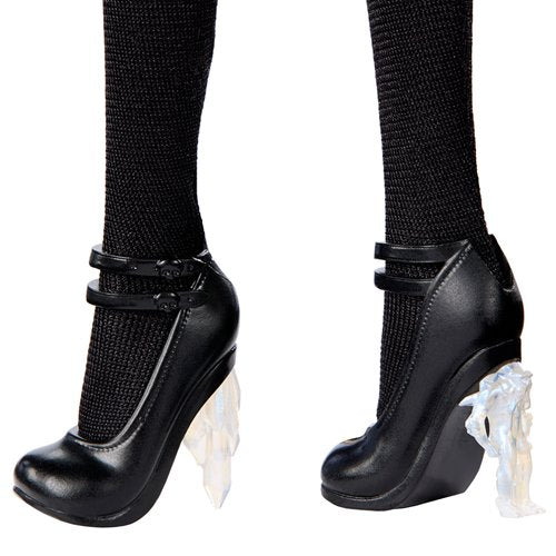 Inspired by Netflix's hit television series Wednesday, Wednesday Addams joins the Monster High family! Woe, what a night! Inspired by the iconic black dress, this Rave’N Wednesday doll is drop dead gore-geous in her gothic gown. Dark as her sense of humor, Rave’N Wednesday’s organza dress has sheer layers that look spun from shadows. A statement belt and Monster High earrings complete her wickedly chic look. She’s ready to step into a nightmarish night in her boo-spoke shoes! Their icicle and yeti heels pay homage to the Rave’N dance’s theme: climate crisis meets extinction event. Doll stand and Certificate of Authenticity included. Check out the entire Monster High x Wednesday line for more delightfully dire dolls (sold separately)!